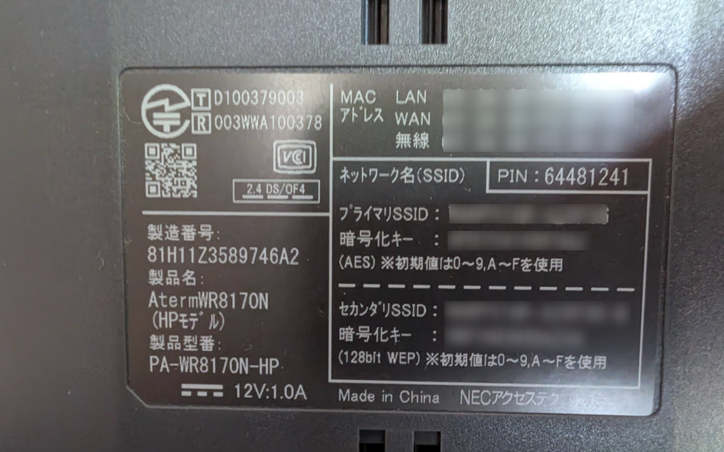 シールはルーターの底面や側面に貼られていることが多いです。
